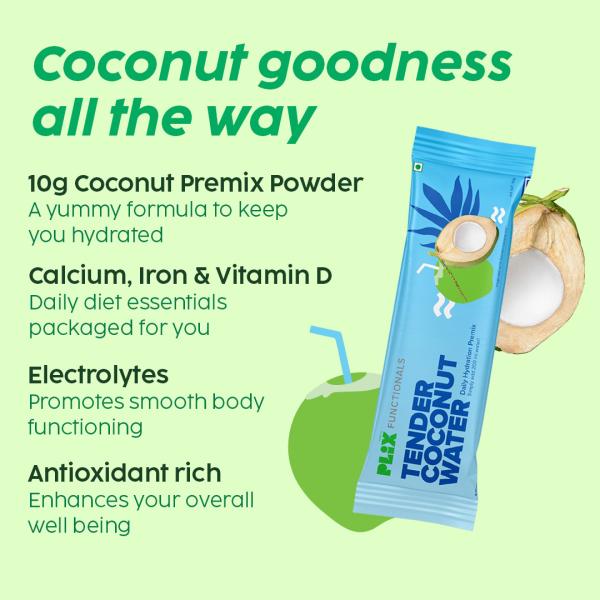 PLIX Tender Coconut Water Premix Powder Pack of 30 Sachets with Natural Plix Tender Coconut Water Ingredients hence, plix’s tender coconut water powder premix contains organic coconut water powder, nutrients, antioxidants, and minerals. Our tender coconut water powder mix is. each serving of tender coconut water contains 9 grams of carbohydrates, 252 milli grams of sodium, 600 milligrams of potassium, 2.6 grams of dietary fiber, and. Probiotic shield effervescent starting from aed 99 a. Plix Tender Coconut Water Ingredients.